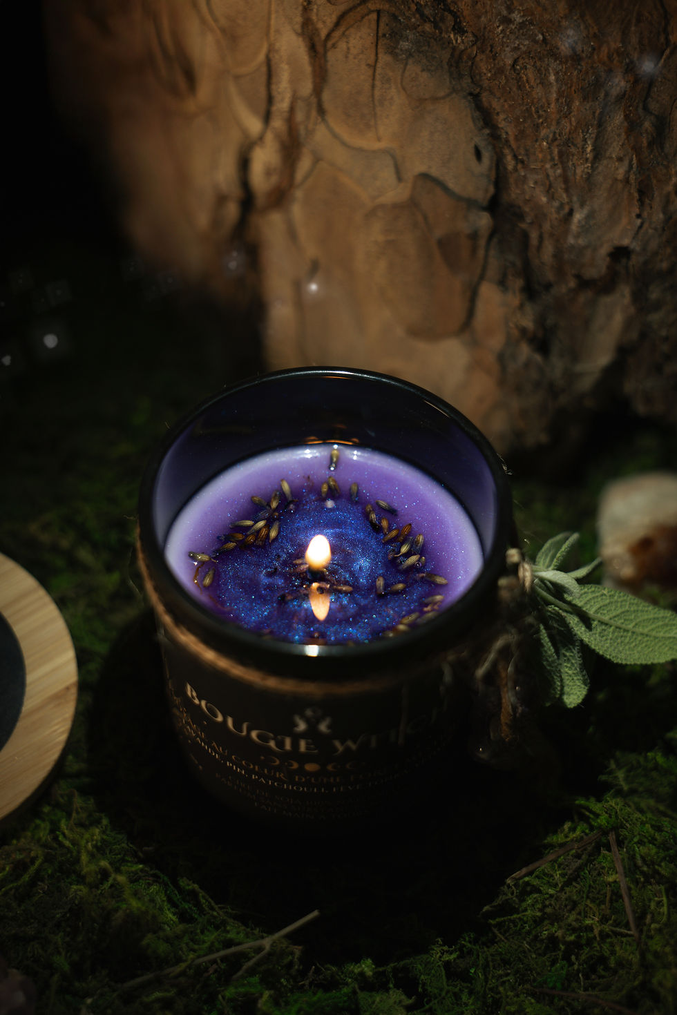 Coulée à la main sous une pleine lune d'inspiration, elle dévoile une cire violette hypnotique.